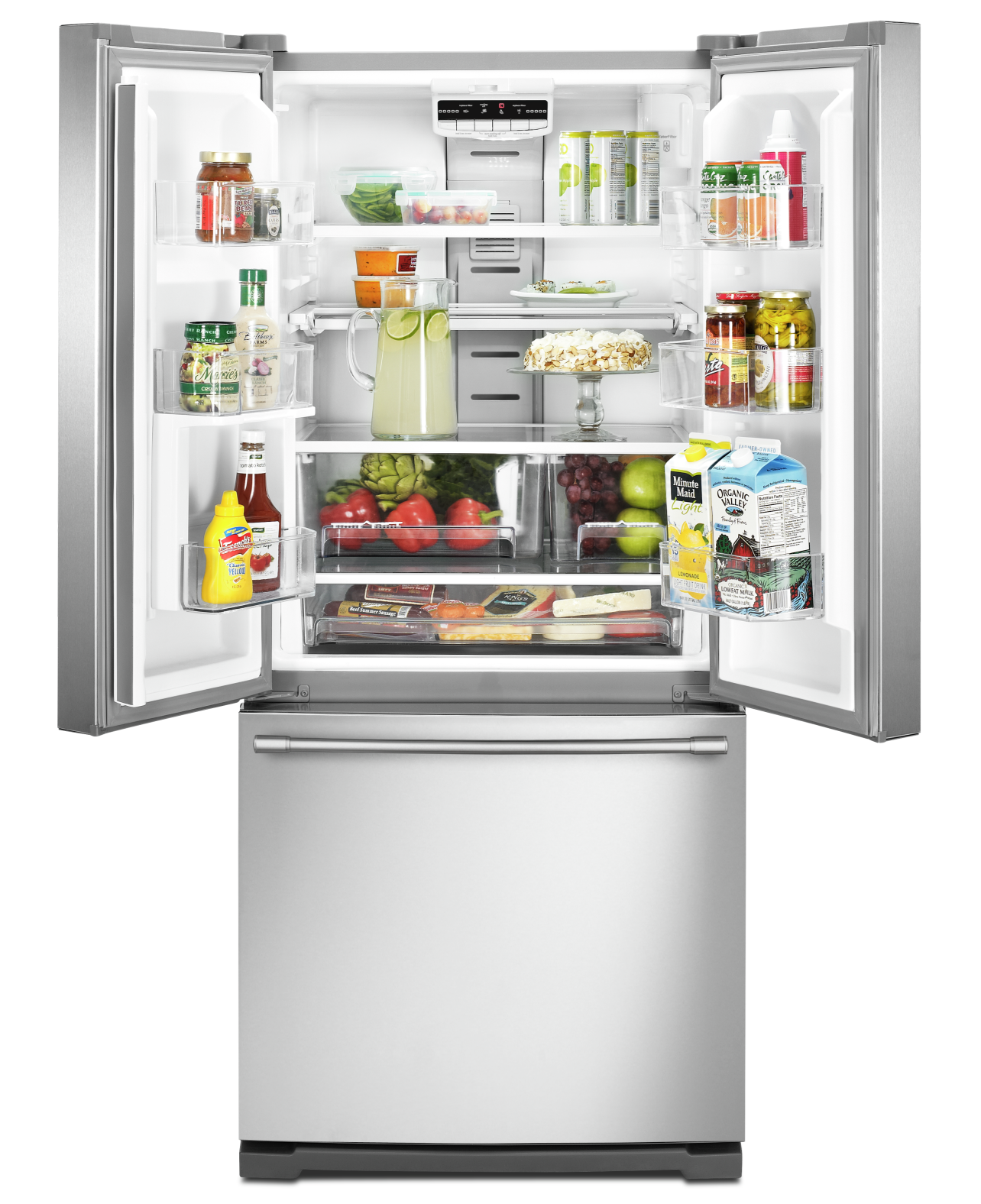 - French-door fresh-food section creates a wide opening for larger items and meal prep containers.