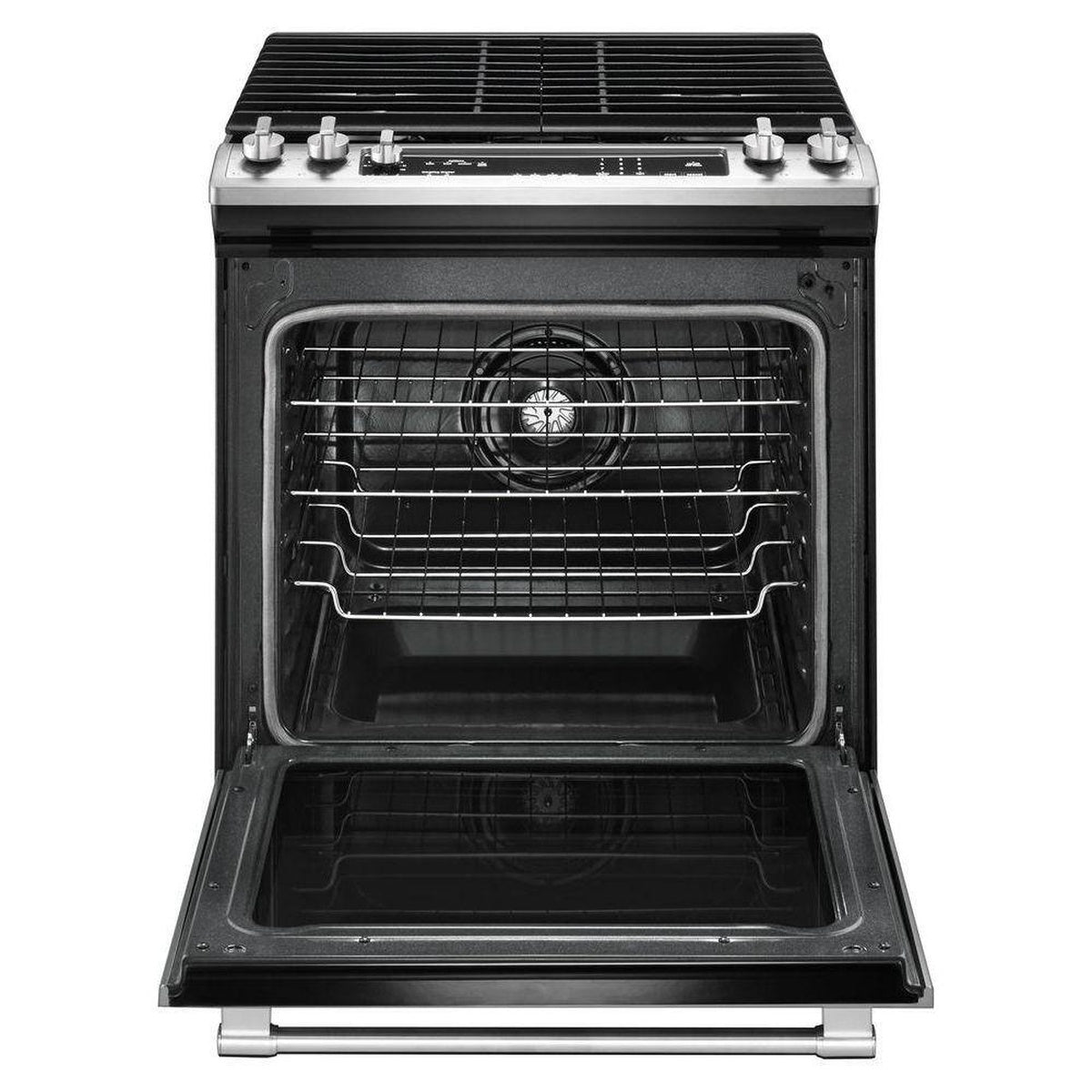 A slide-in gas range that delivers a clean, modern look with everyday-friendly cooking control.