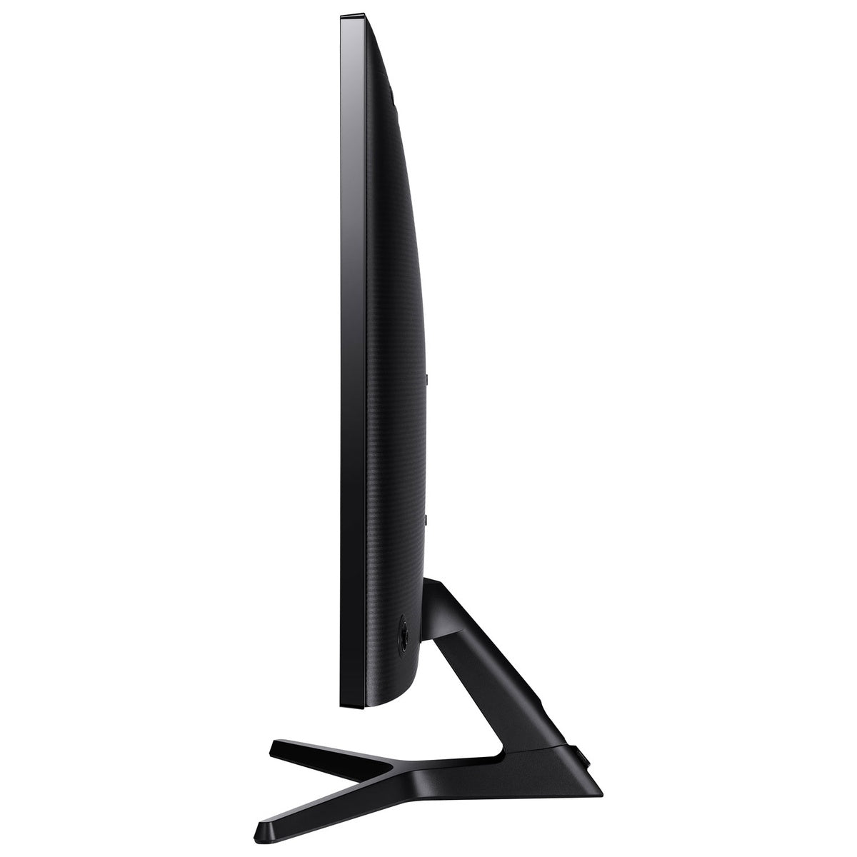 Angled view of the Samsung monitor with slim profile and Y-shaped stand.