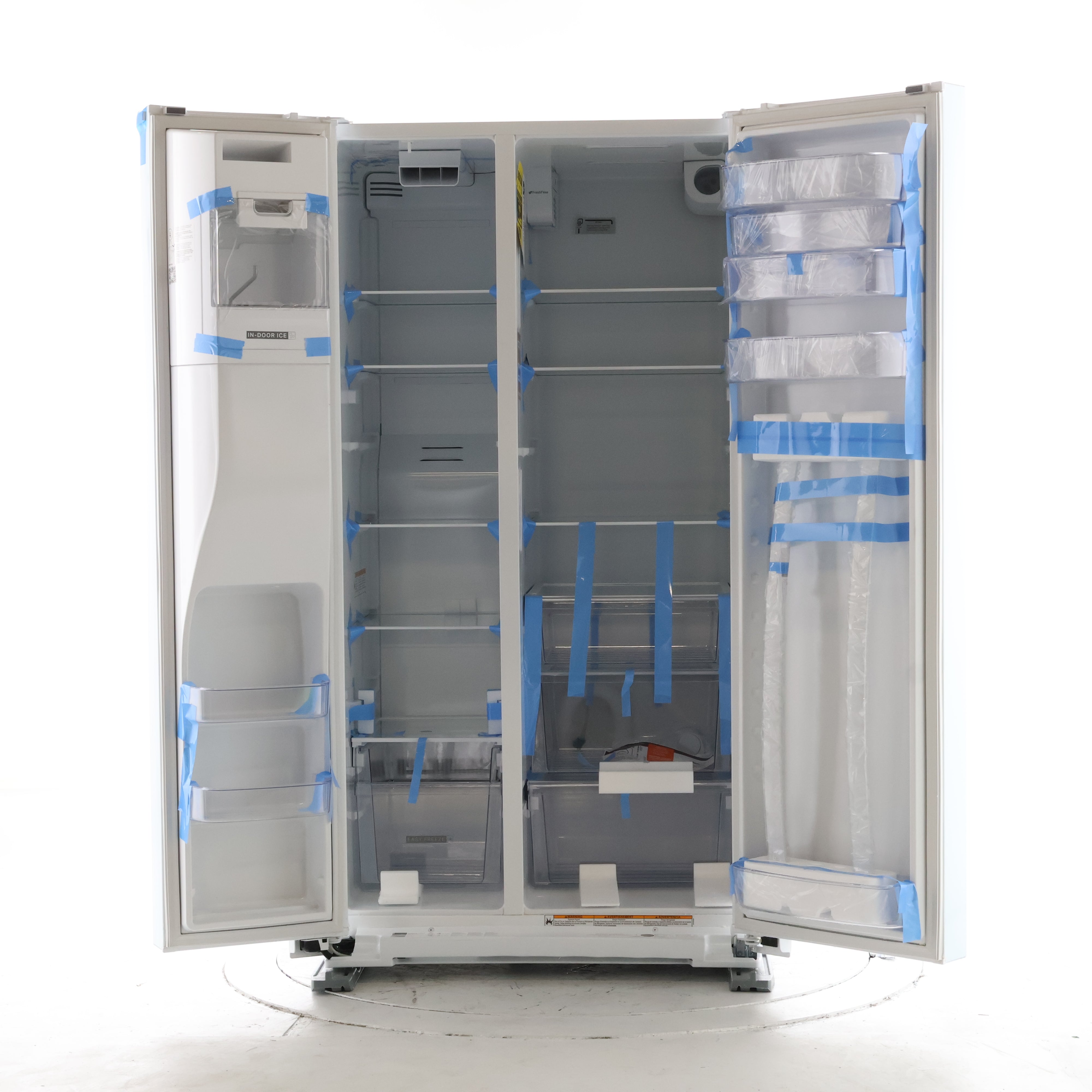 • In-Door-Ice System: Frees up shelf space by moving the ice bin to the freezer door for more usable storage.