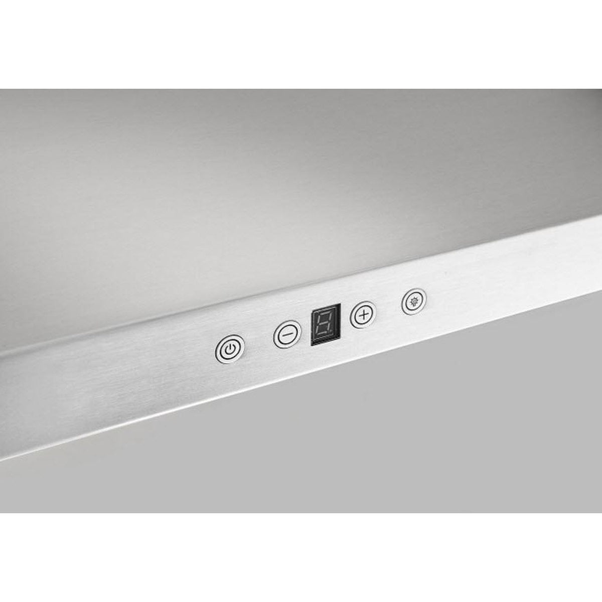 This model pairs a wide stainless canopy with pro-style baffle filtration and a centered control area for quick access.