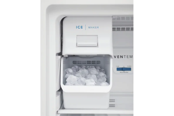 Top freezer layout with spacious interior storage to keep weekly groceries organized in a 27 7/8 in. wide footprint.