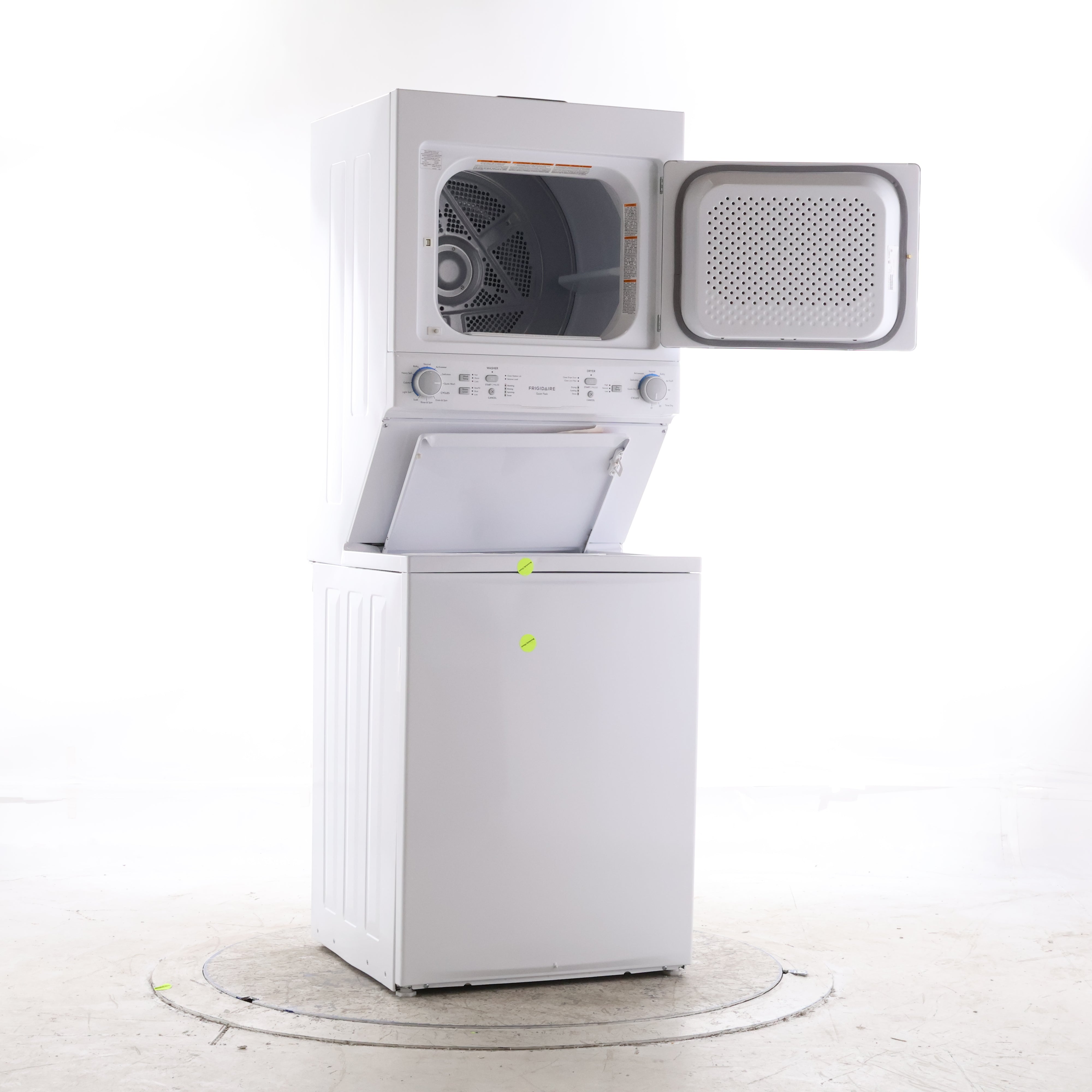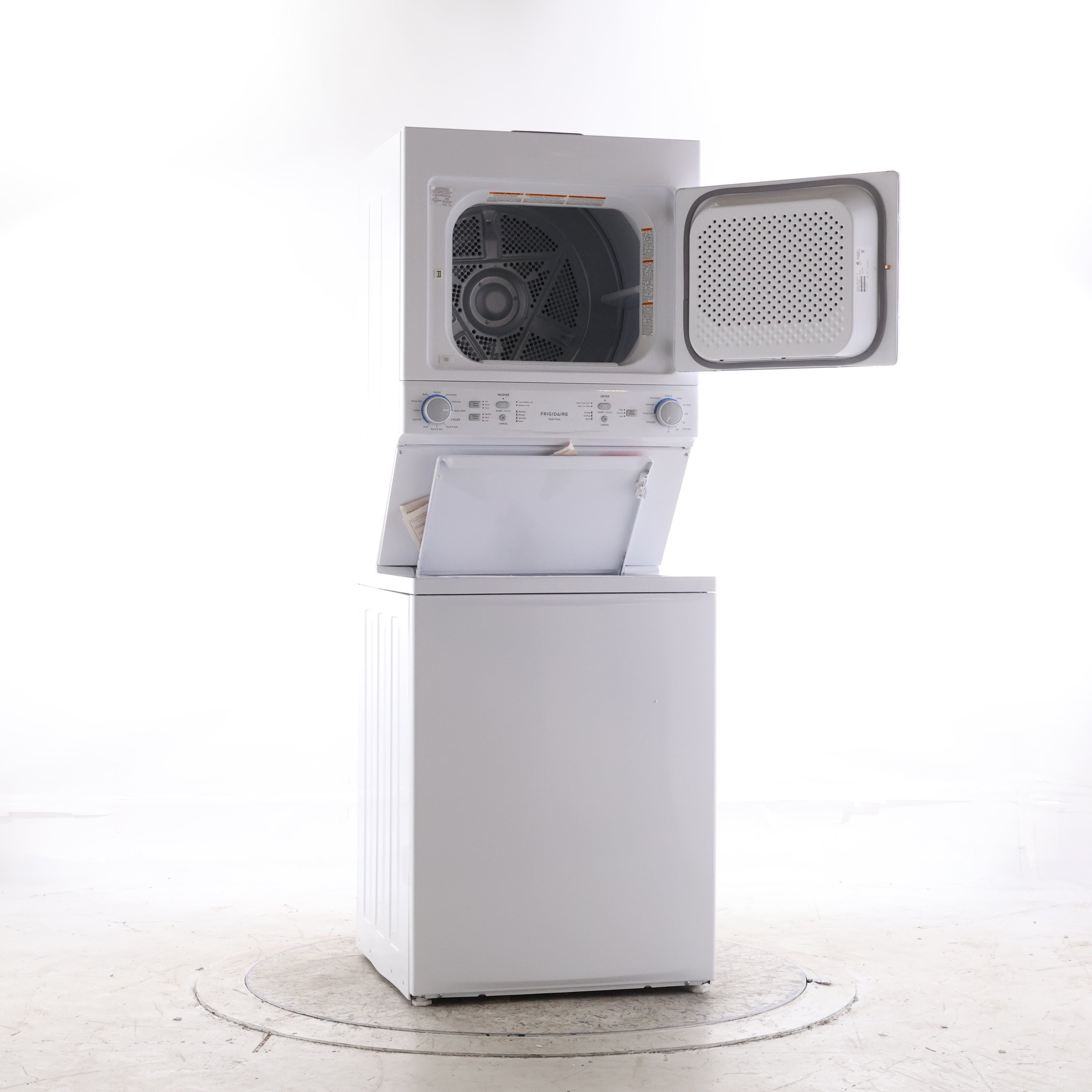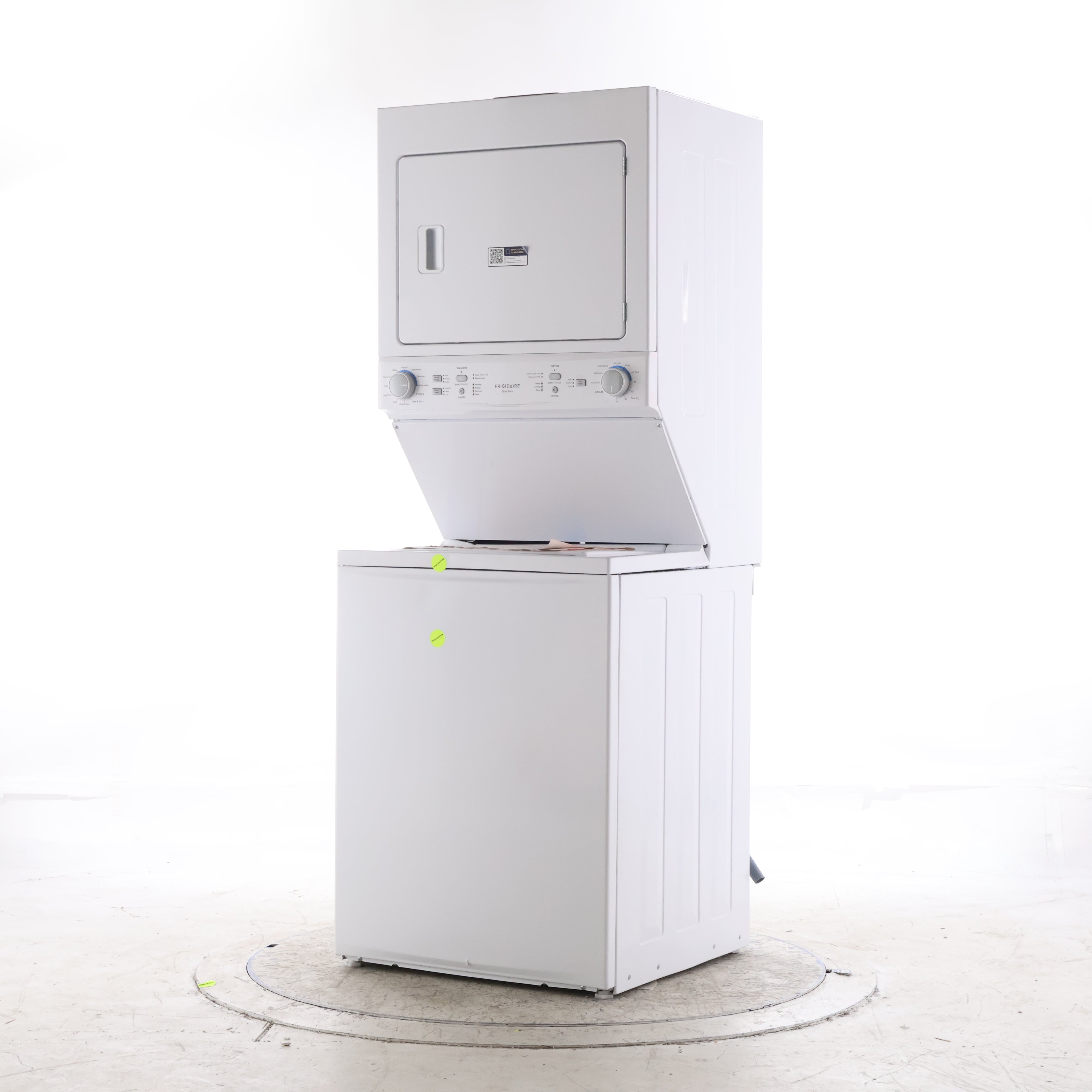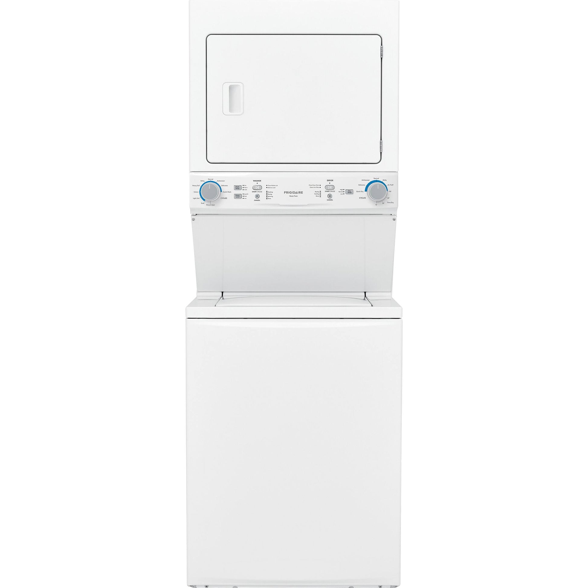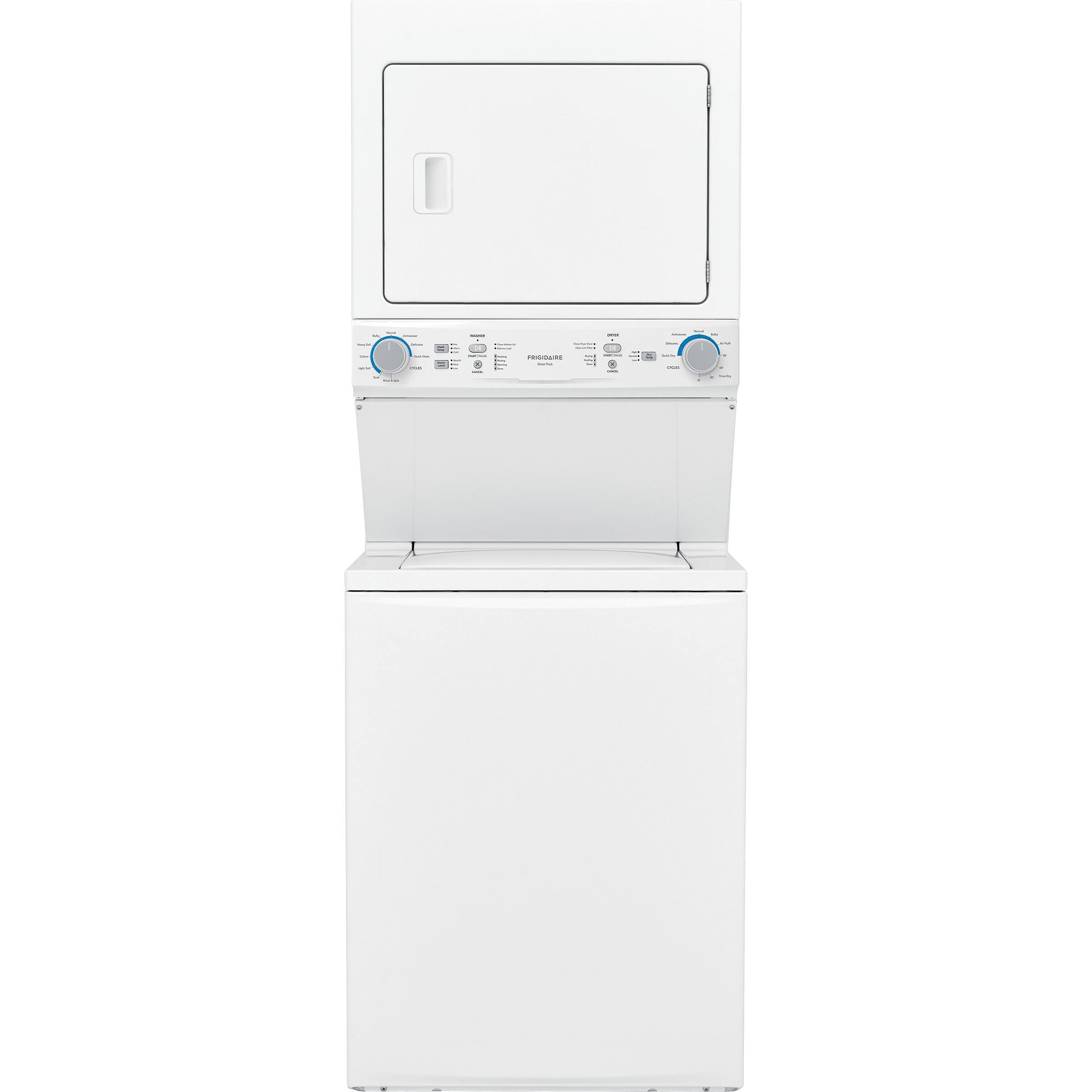 - Space-Saving Laundry Center: Integrated washer and dryer stack fits tight spaces while delivering full-size performance.