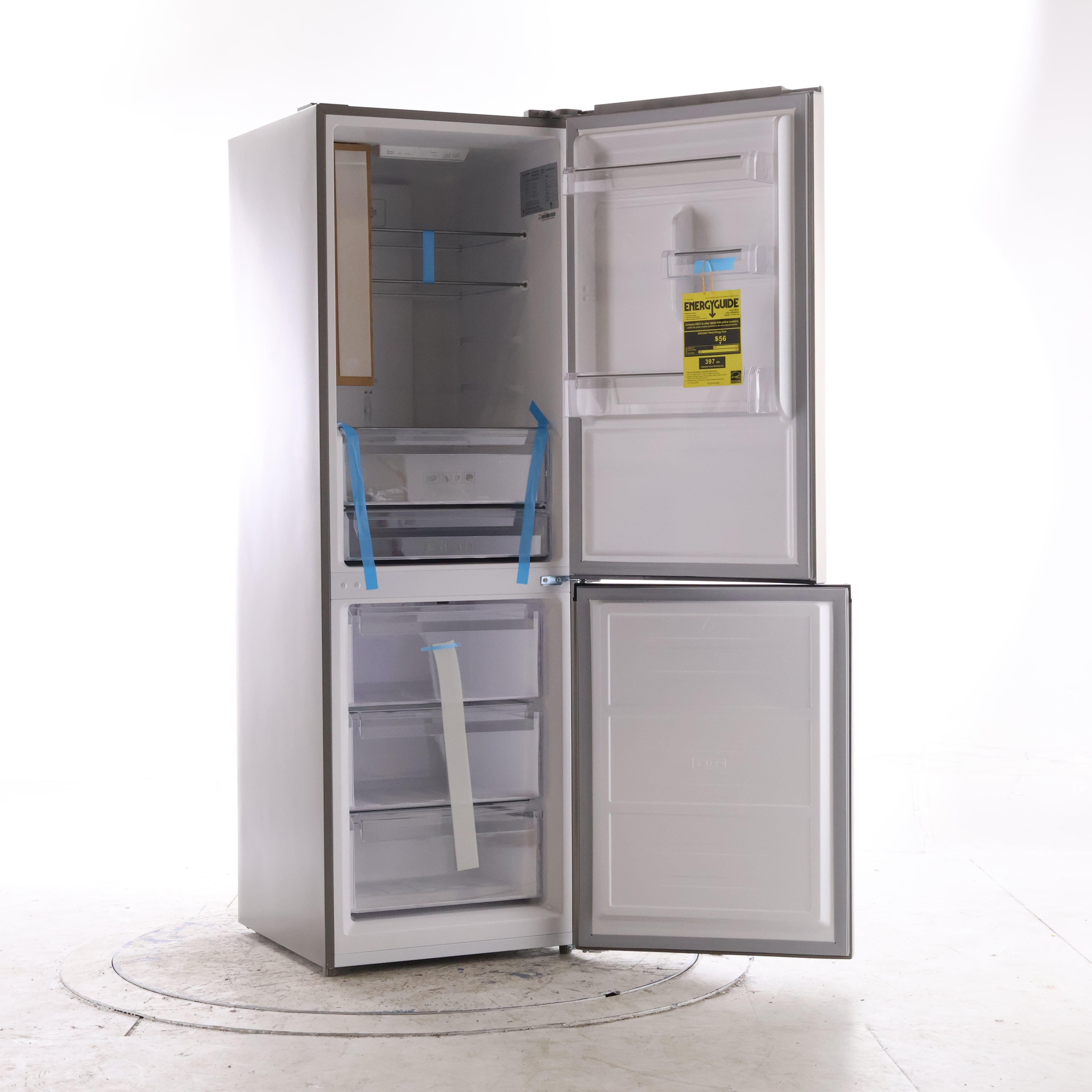 - Bottom Freezer Layout: Frequently used fresh foods stay at eye level, with organized freezer drawers below.