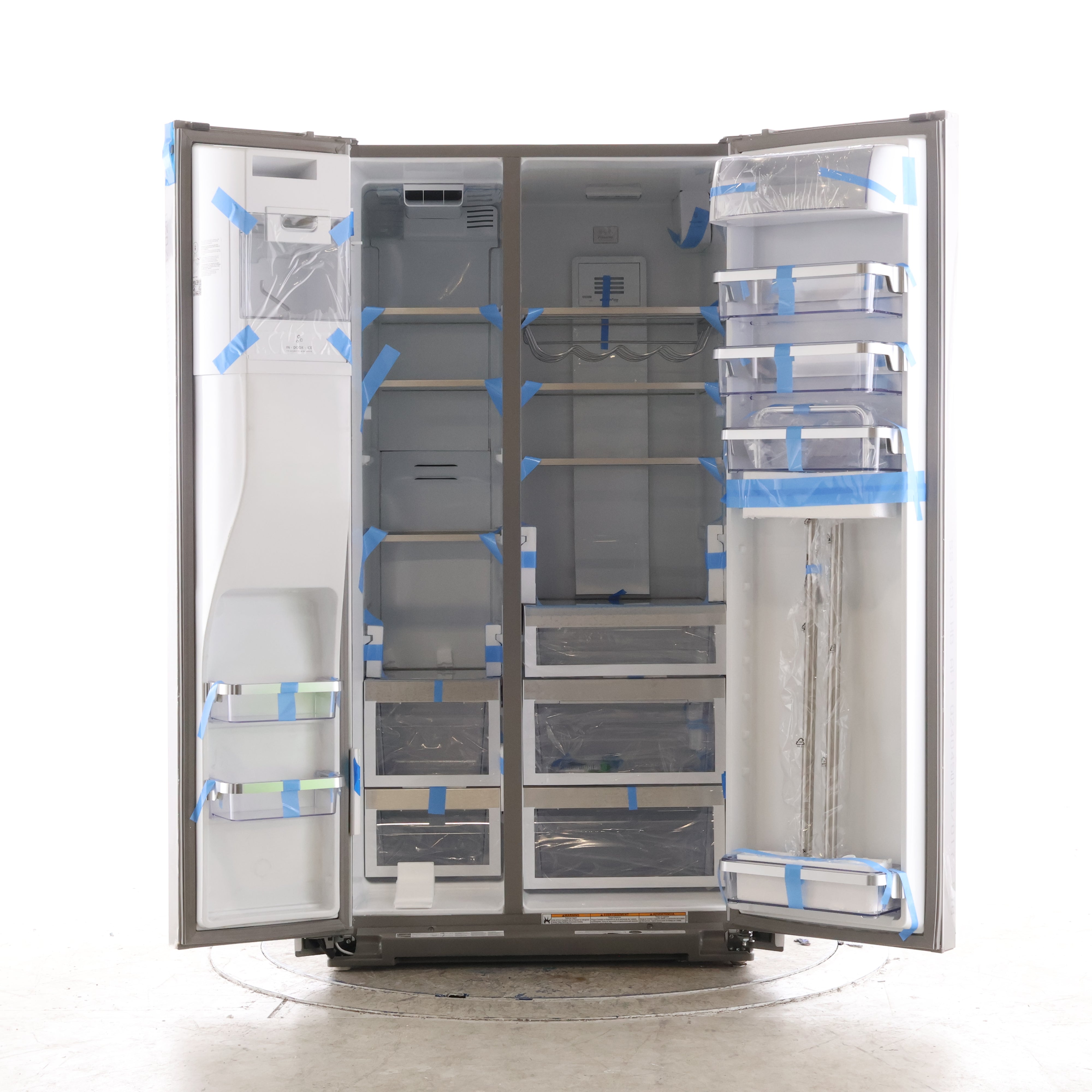 • In-Door-Ice System: Ice bin mounted in the left door frees up shelf space inside the refrigerator.