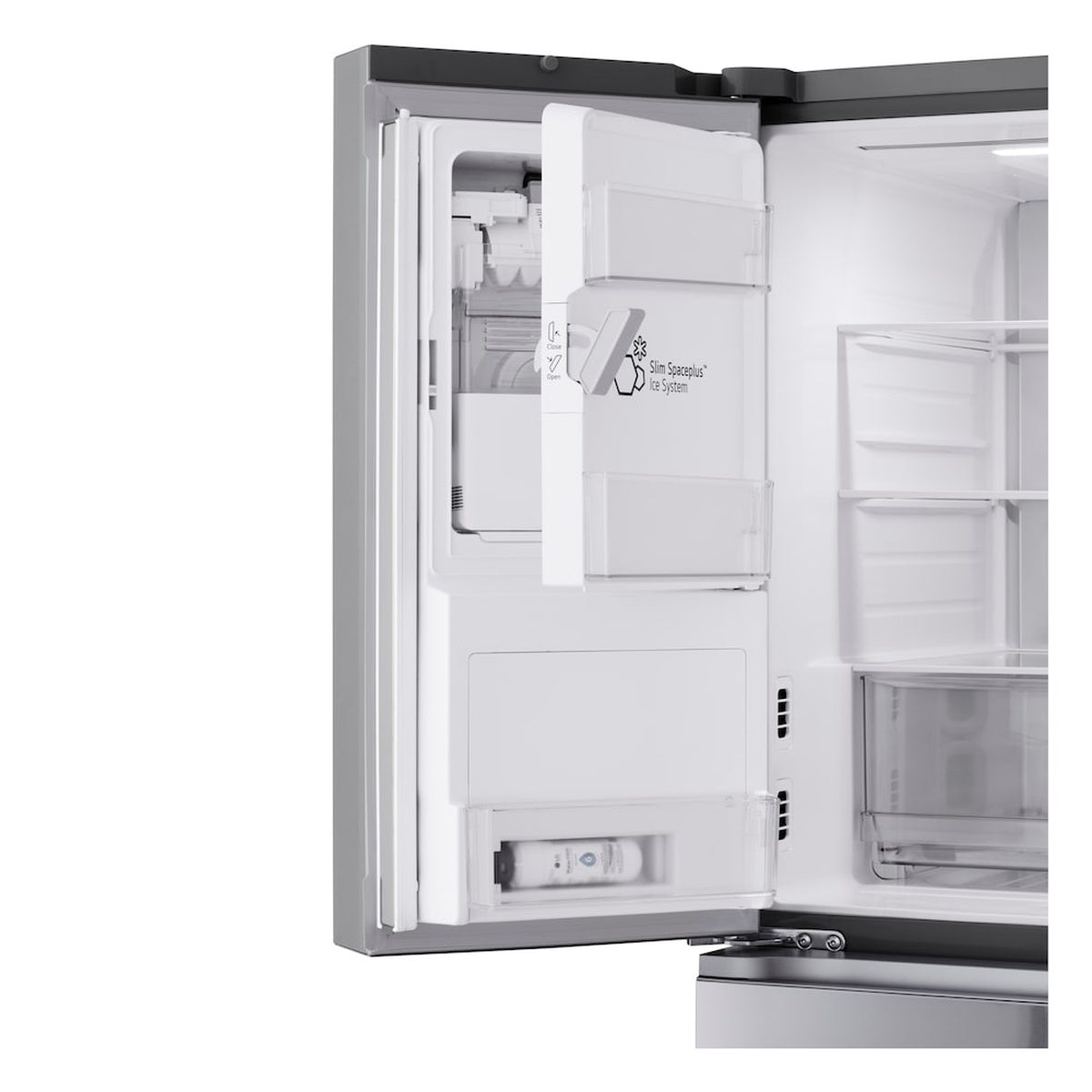 - Dual Ice & External Water: SpacePlus ice system with internal ice maker and external water dispenser for convenient, filtered ice and water.