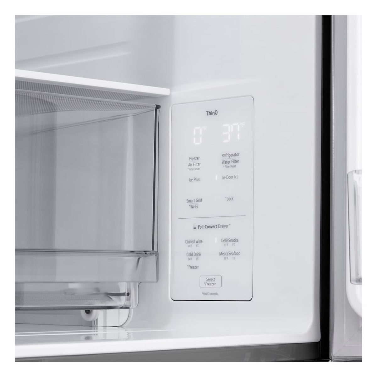 - Full-Convert Drawer: Switch between refrigerator and freezer settings with five precise temperature options for wine, deli, drinks, meats, or frozen items.