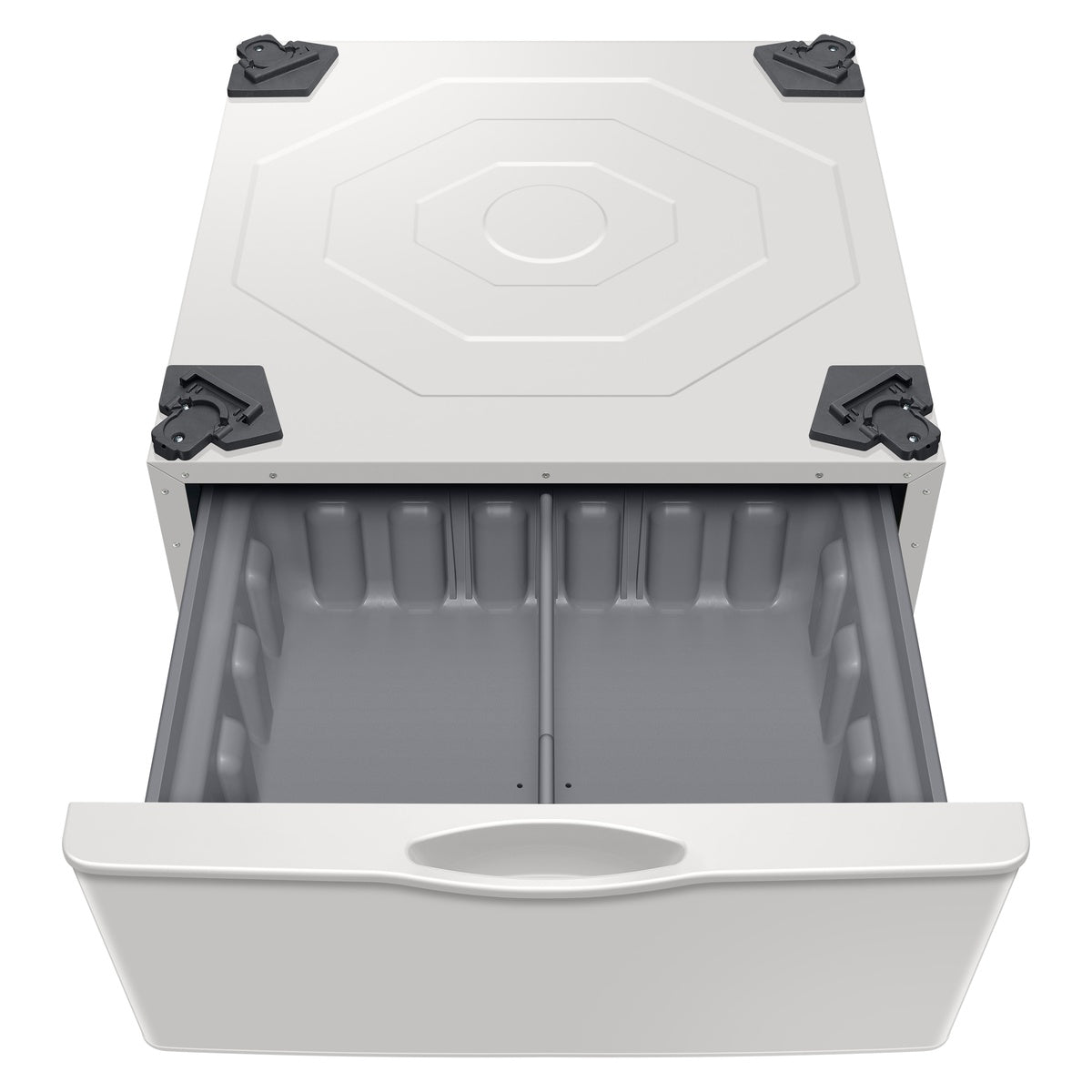 This 27 in. wide pedestal adds everyday organization with an easy-access drawer that stores laundry supplies right where you use them.