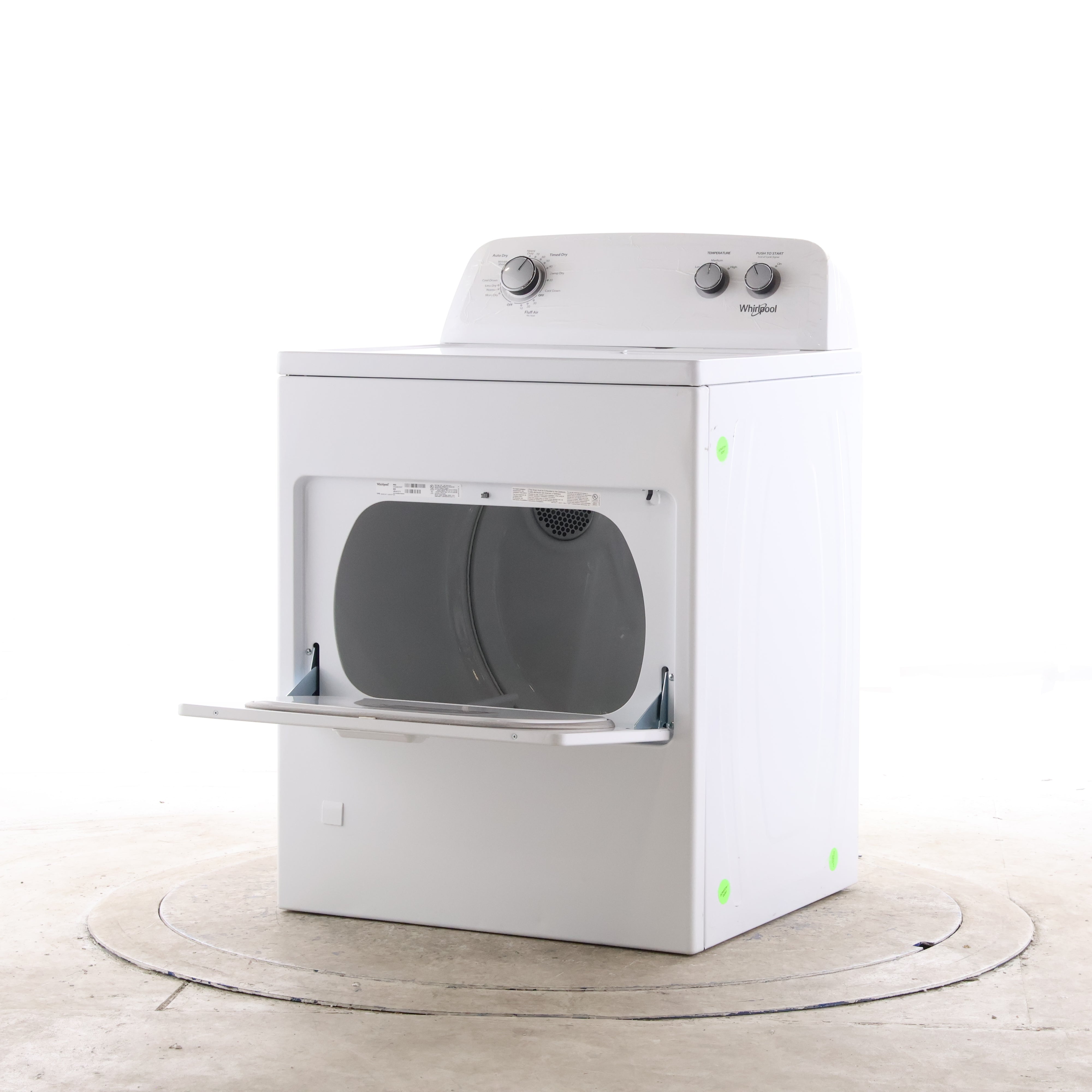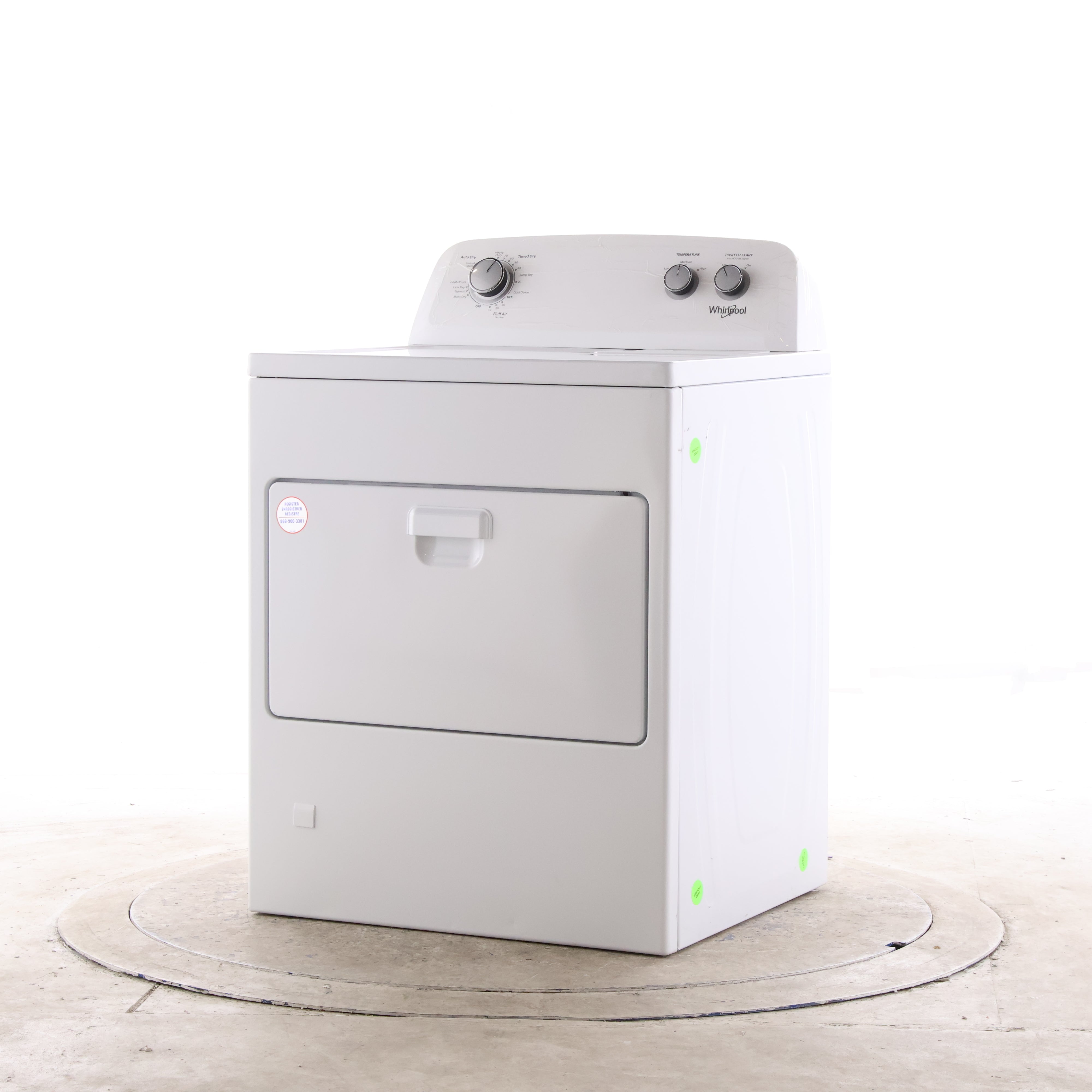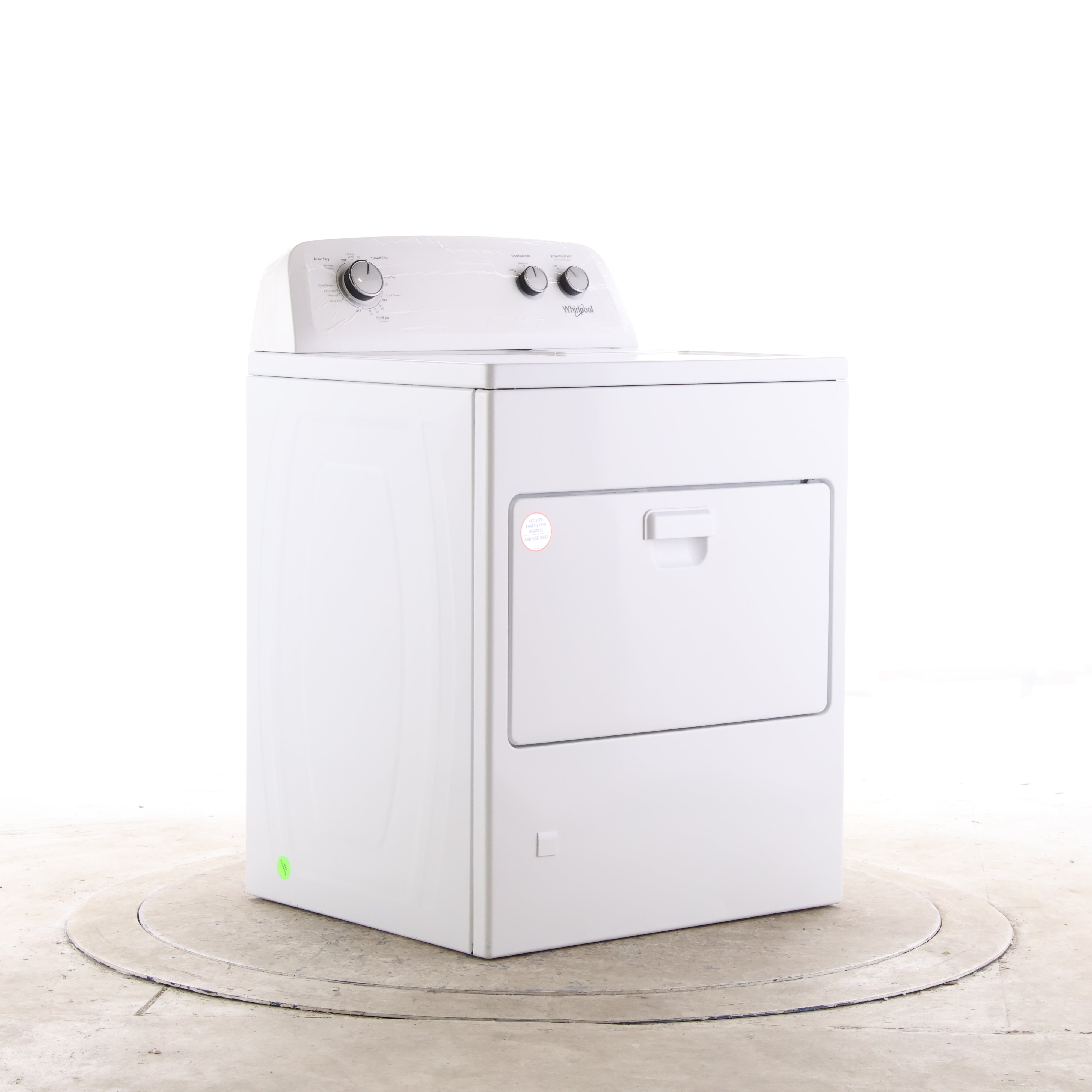 Whirlpool gas dryer WGD4850HW offers a full-size 7.0 cu. ft. capacity with straightforward dial controls for everyday laundry. Choose it when you want simple, familiar operation and a wide-opening hamper-style door, instead of a feature-heavy digital dryer.