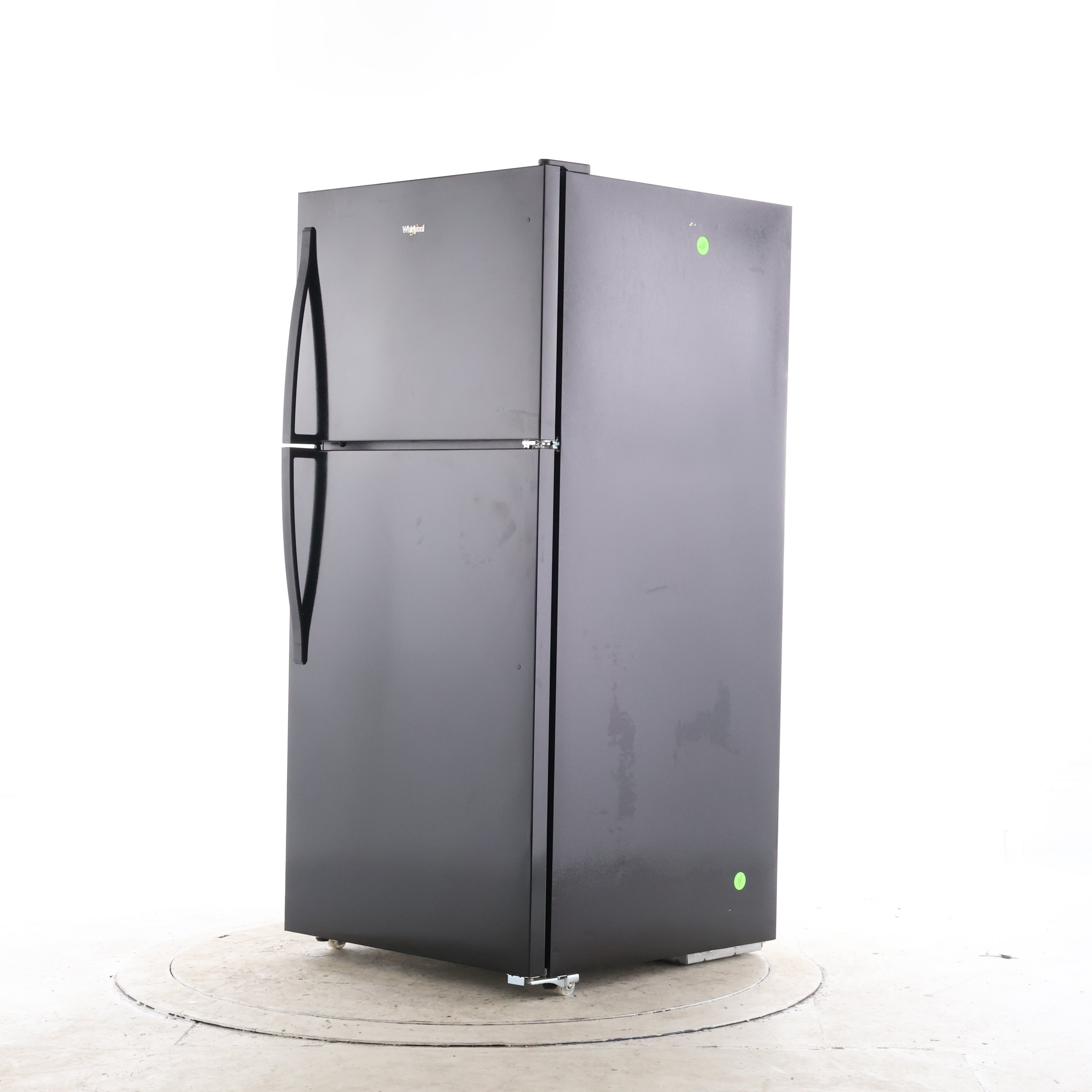 Sized for everyday kitchens and smaller homes, this Whirlpool top-freezer refrigerator offers 18.2 cu. ft. of storage in a 29.75 in. W x 65.88 in. H x 33.5 in. D (including handles) design.