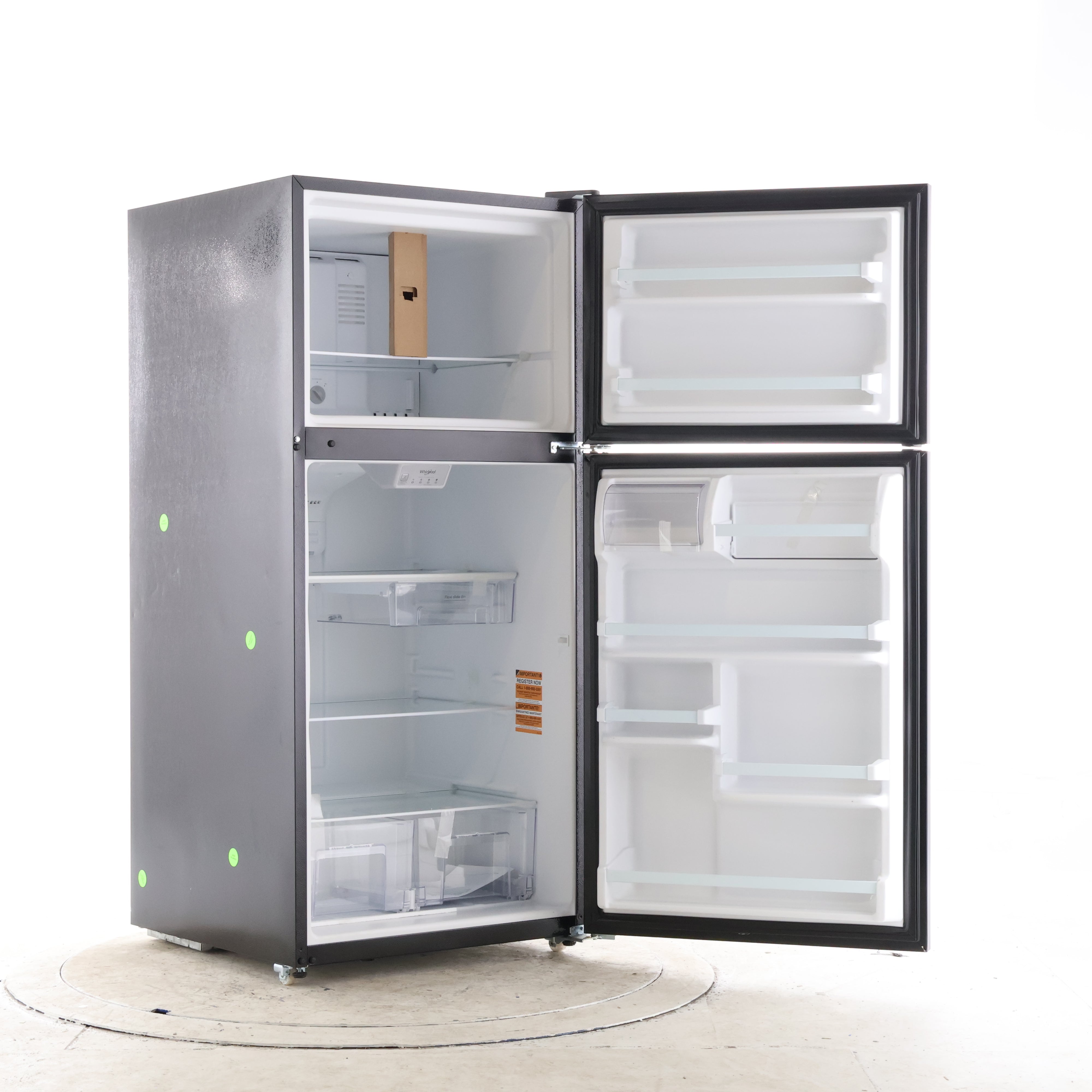 Make room fast with the Flexi-Slide bin plus frameless glass shelves and humidity-controlled crispers that help keep groceries organized and easy to reach.